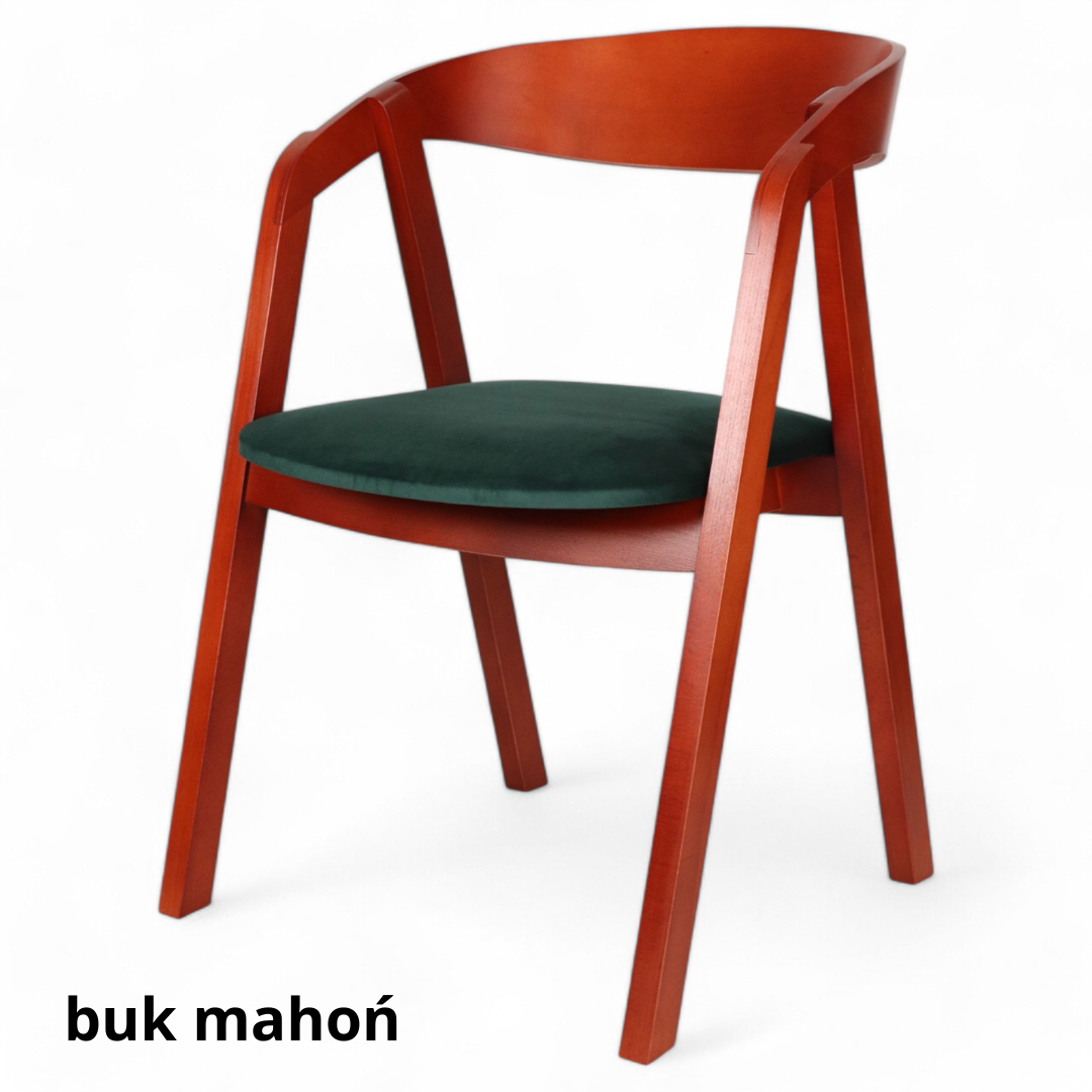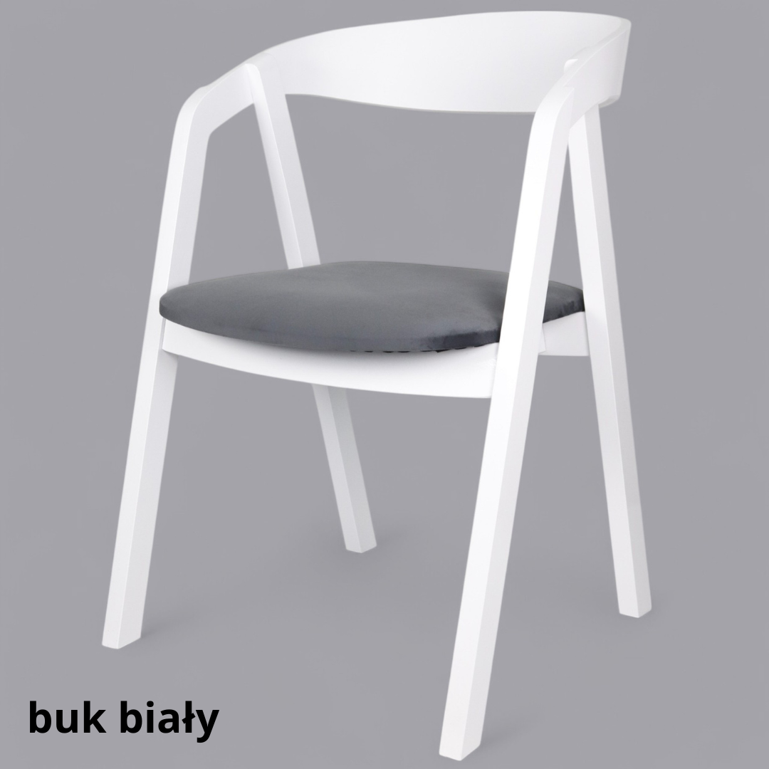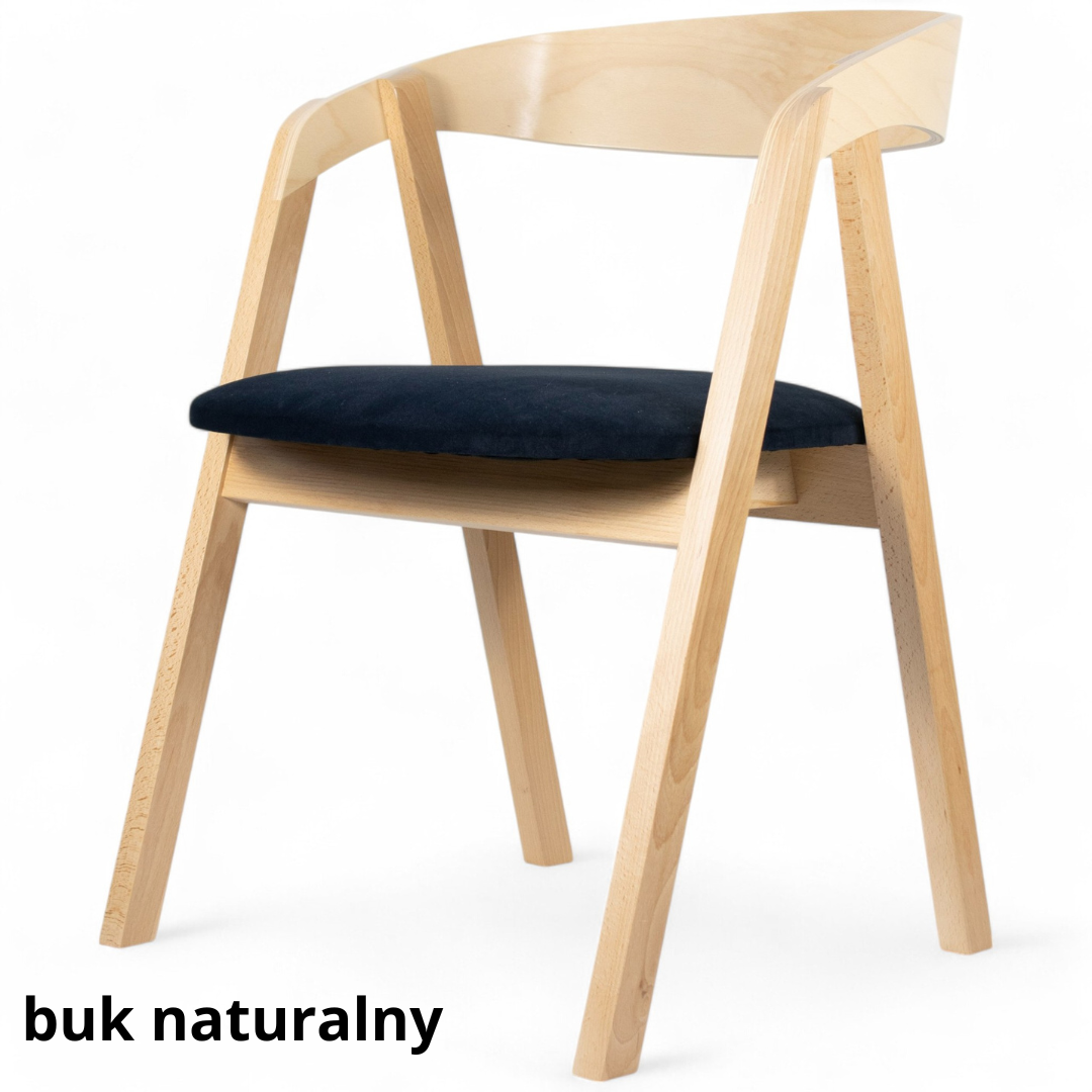 Szkielet krzesła wykonany z drewna bukowego, tapicerowane siedzisko w miękkiej i trwałej tkaninie Amor typu welwet.