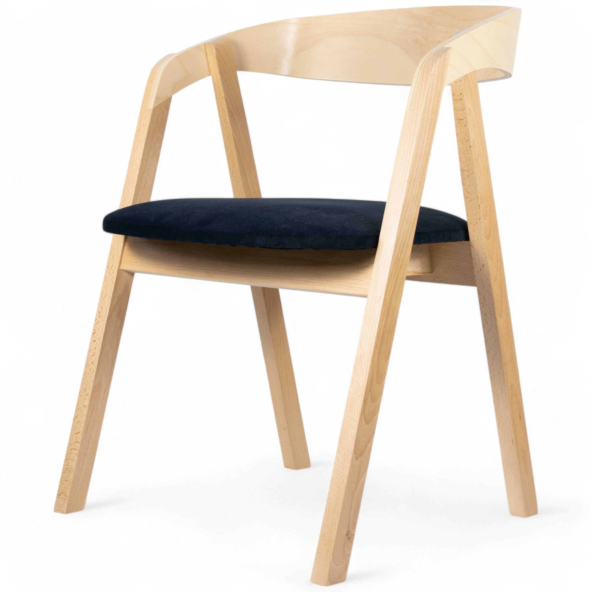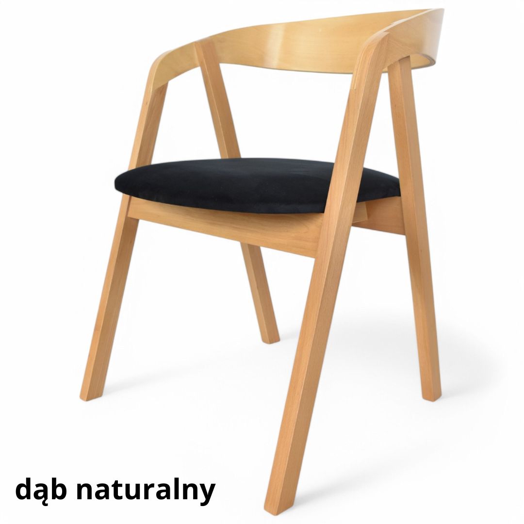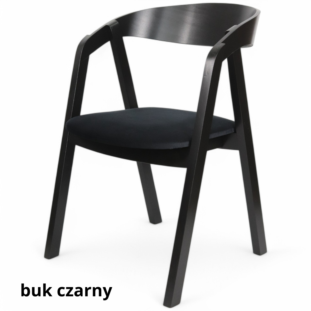 Szkielet krzesła wykonany z drewna bukowego, tapicerowane siedzisko w miękkiej i trwałej tkaninie Amor typu welwet.