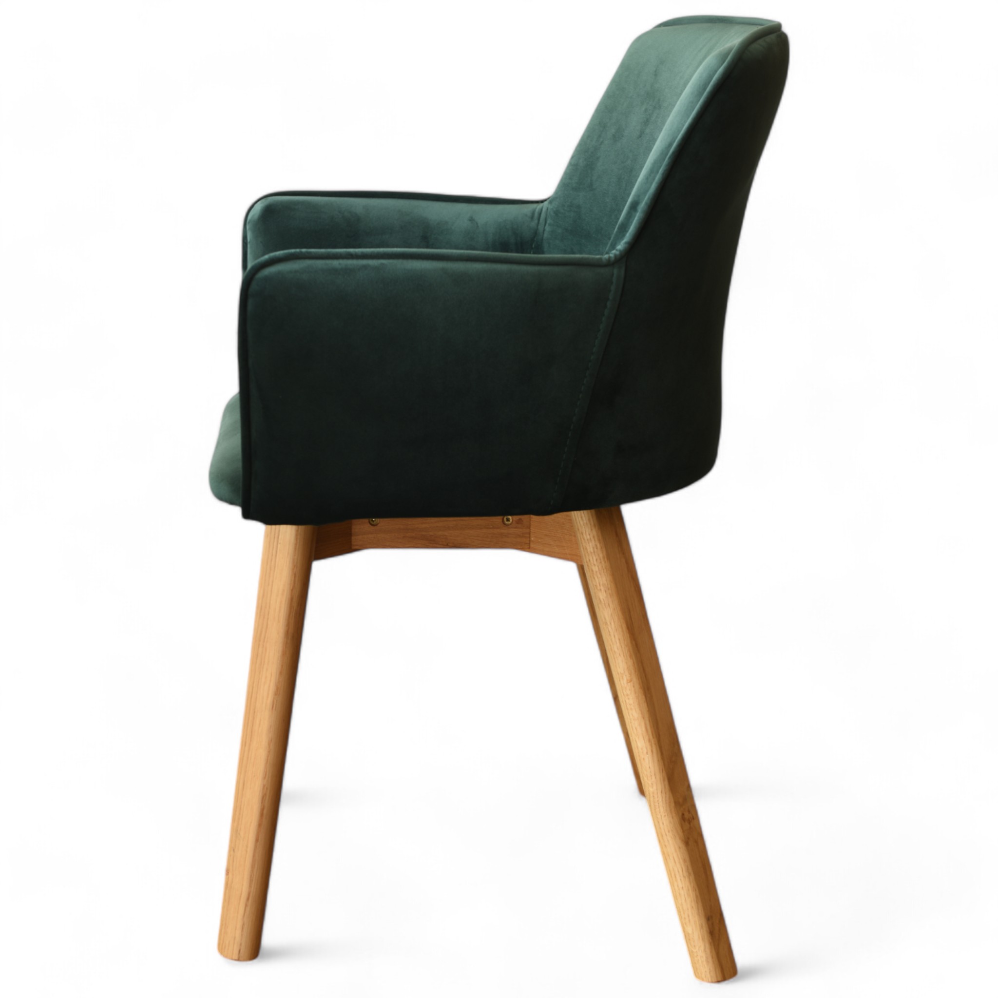 Krzesło tapicerowane na dębowych nogach K5 to połączenie elegancji, trwałości oraz komfortu. Dzięki solidnym dębowym nogom zapewnia wyjątkową stabilność, a miękkie siedzisko z pianki T32 gwarantuje wygodę podczas użytkowania. Co więcej, doskonale wyprofilowane oparcie oraz podłokietniki sprawiają, że mebel ten jest idealnym wyborem do jadalni, salonu czy gabinetu. Ponieważ został wykonany w Polsce z najwyższej jakości materiałów, możesz mieć pewność, że posłuży przez długie lata.