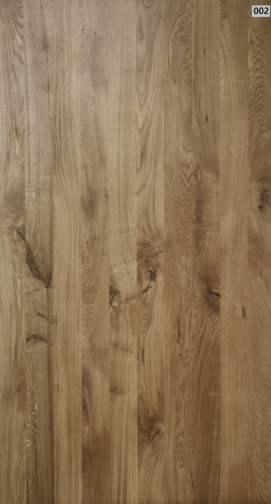 Blat wykonano z desek dębowych o szerokości ok. 10 cm, klejonych po szerokości, co zapewnia wyjątkową stabilność i odporność na odkształcenia. Grubość blatu wynosi 4 cm, co gwarantuje solidność i długowieczność. Powierzchnia została trzykrotnie zabezpieczona olejową glazurą, dzięki czemu drewno jest chronione, a jednocześnie zachowuje swój naturalny urok.